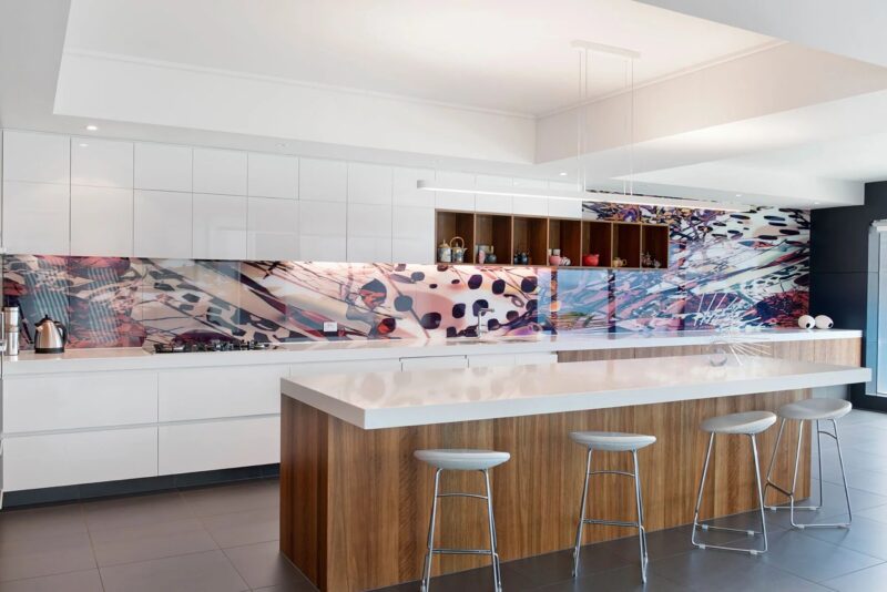 With printed splashbacks, it is also essential to consider heat and cleaning. If the splashback is placed behind a hob, it should be made from toughened safety glass or a heat rated material approved for that area.
